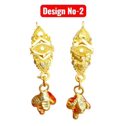 Add a spark to your daily look with our Small Gold Plated Drop Earrings Collection. These lightweight and beautifully crafted earrings are available in 6 unique designs (Design 1-6). Made with high-quality gold plating, they shine just like real gold. Perfect for daily wear, office wear, or as a small gift for your loved ones. The designs feature elegant floral, geometric, and traditional motifs with cute dangling drops.