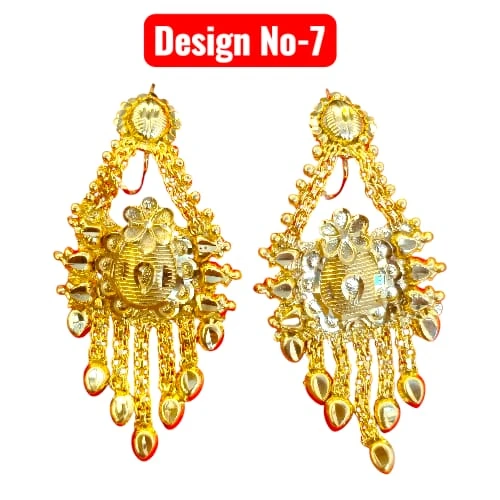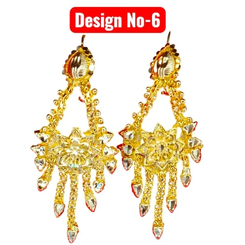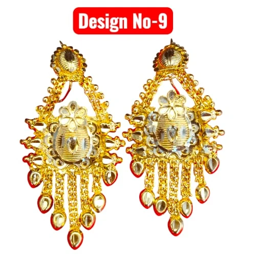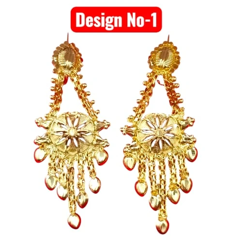 Elevate your traditional look with our collection of Gold Plated Drop Earrings. Available in multiple stunning designs, these earrings are crafted to look like authentic gold jewelry. Whether you prefer a heart shape, floral motif, or intricate geometric patterns, we have a style for every taste. The detailed craftsmanship and hanging tassels/chains make them perfect for weddings, parties, and festivals.