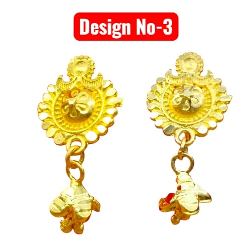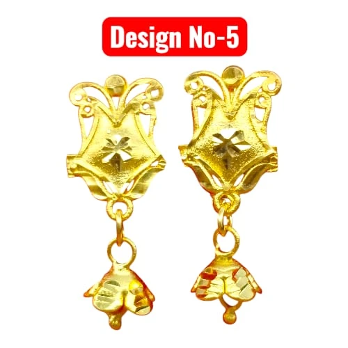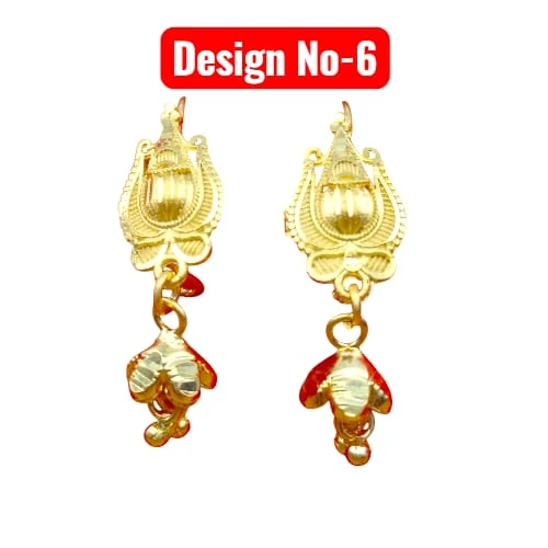 Add a spark to your daily look with our Small Gold Plated Drop Earrings Collection. These lightweight and beautifully crafted earrings are available in 6 unique designs (Design 1-6). Made with high-quality gold plating, they shine just like real gold. Perfect for daily wear, office wear, or as a small gift for your loved ones. The designs feature elegant floral, geometric, and traditional motifs with cute dangling drops.