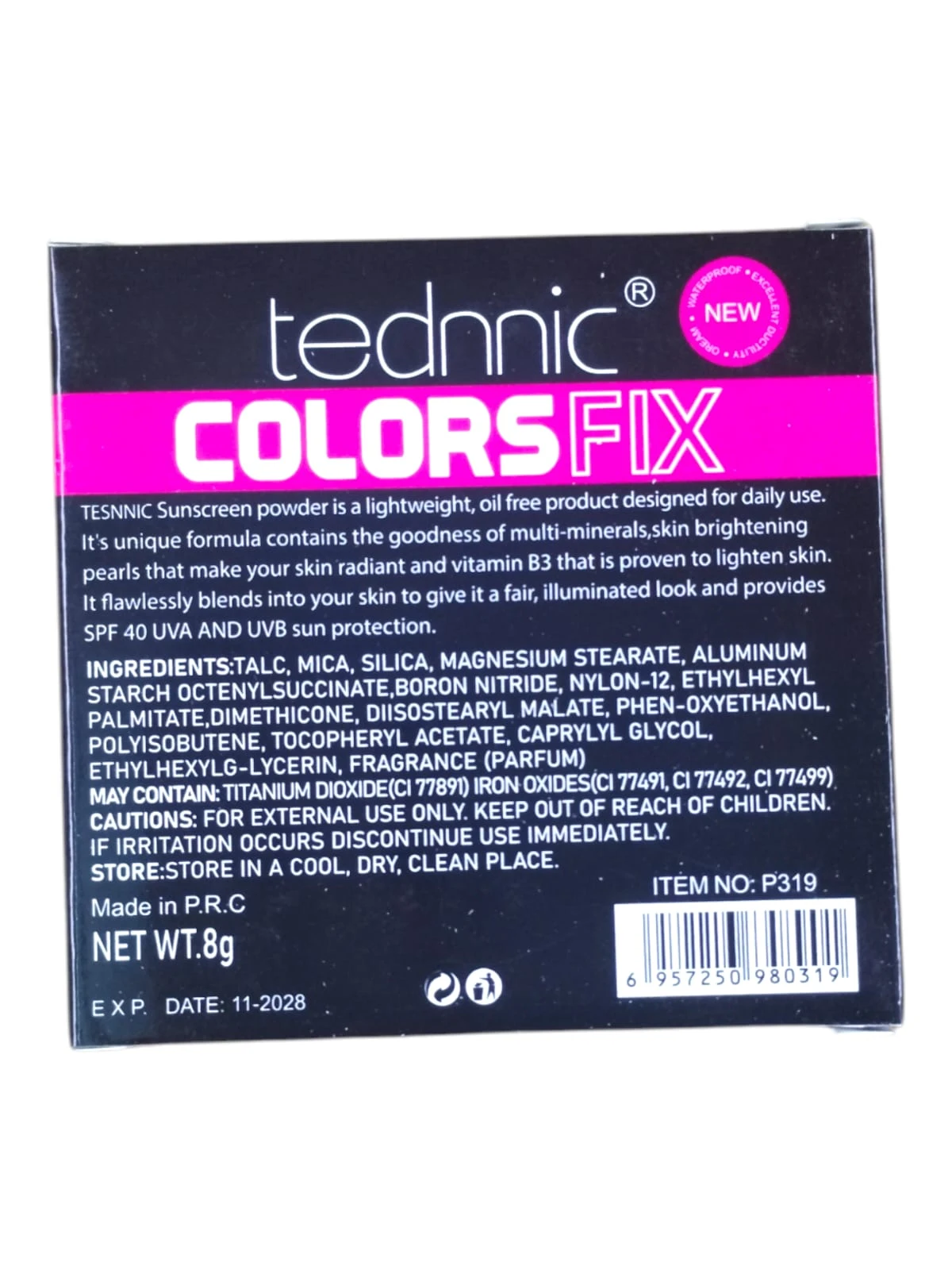 Protect your skin while looking flawless with tednnic COLORSFIX Creme Puff Pressed Powder. This lightweight and oil-free powder is designed for daily use to give you a fair and illuminated look. Enriched with multi-minerals, skin-brightening pearls, and Vitamin B3, it helps to lighten the skin tone naturally. Plus, its SPF 40 UVA/UVB protection guards your skin against harmful sun rays. It is waterproof and blends effortlessly for a smooth finish.