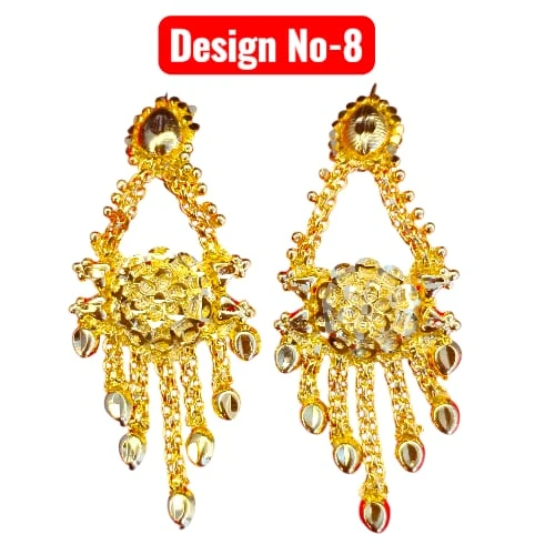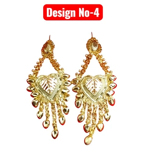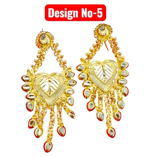 Elevate your traditional look with our collection of Gold Plated Drop Earrings. Available in multiple stunning designs, these earrings are crafted to look like authentic gold jewelry. Whether you prefer a heart shape, floral motif, or intricate geometric patterns, we have a style for every taste. The detailed craftsmanship and hanging tassels/chains make them perfect for weddings, parties, and festivals.